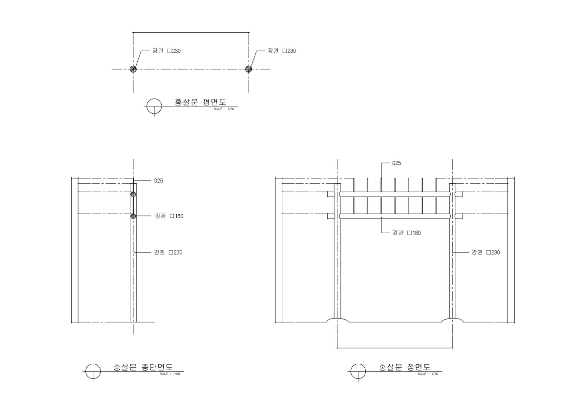 홍살문 평면도 종단면도 정면도