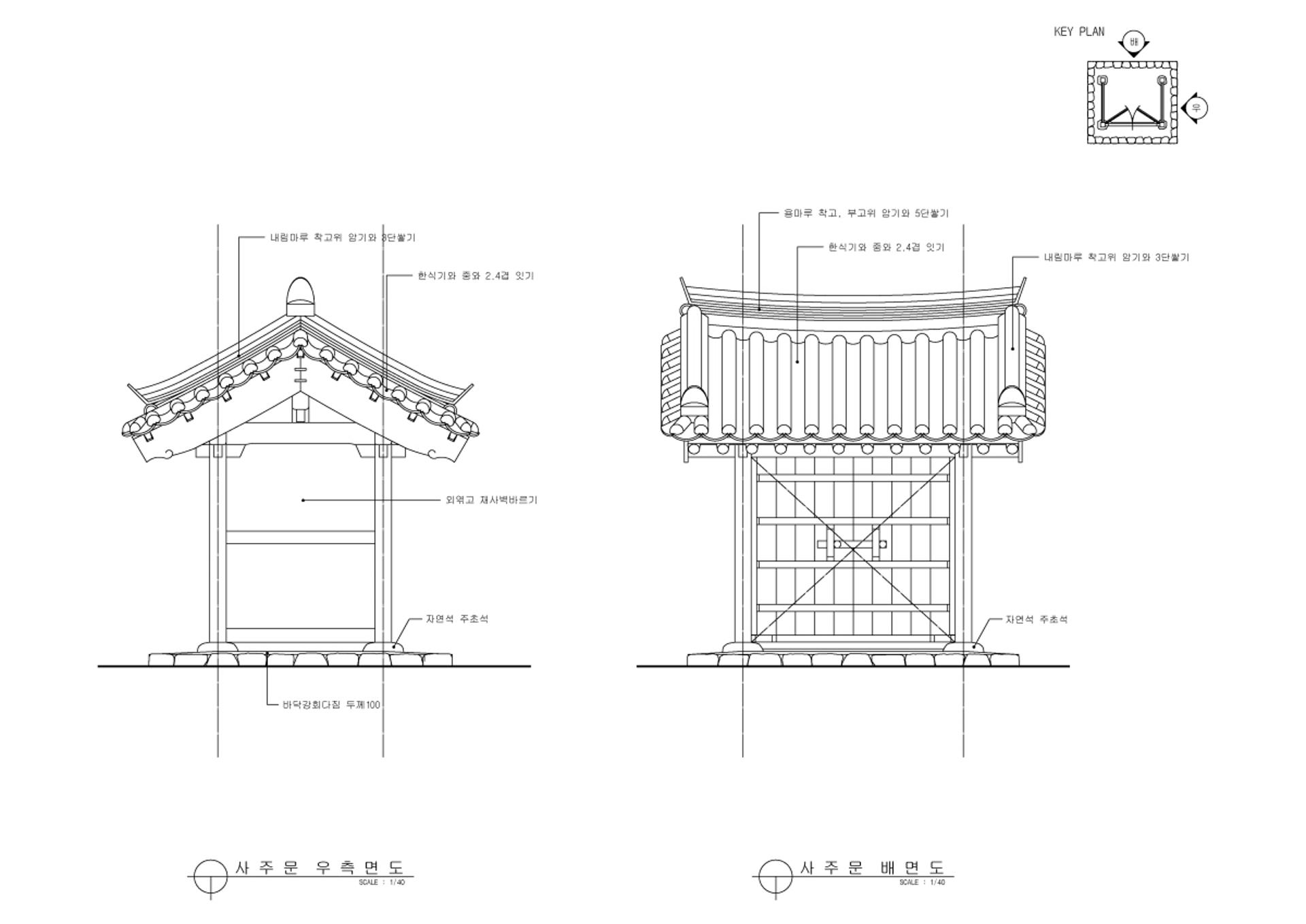 사주문 우측면도 배면도