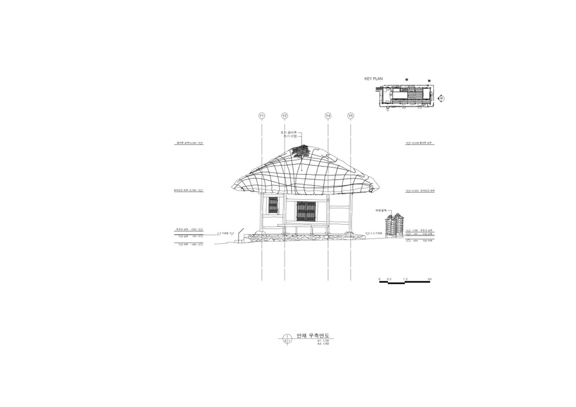 안채 우측면도