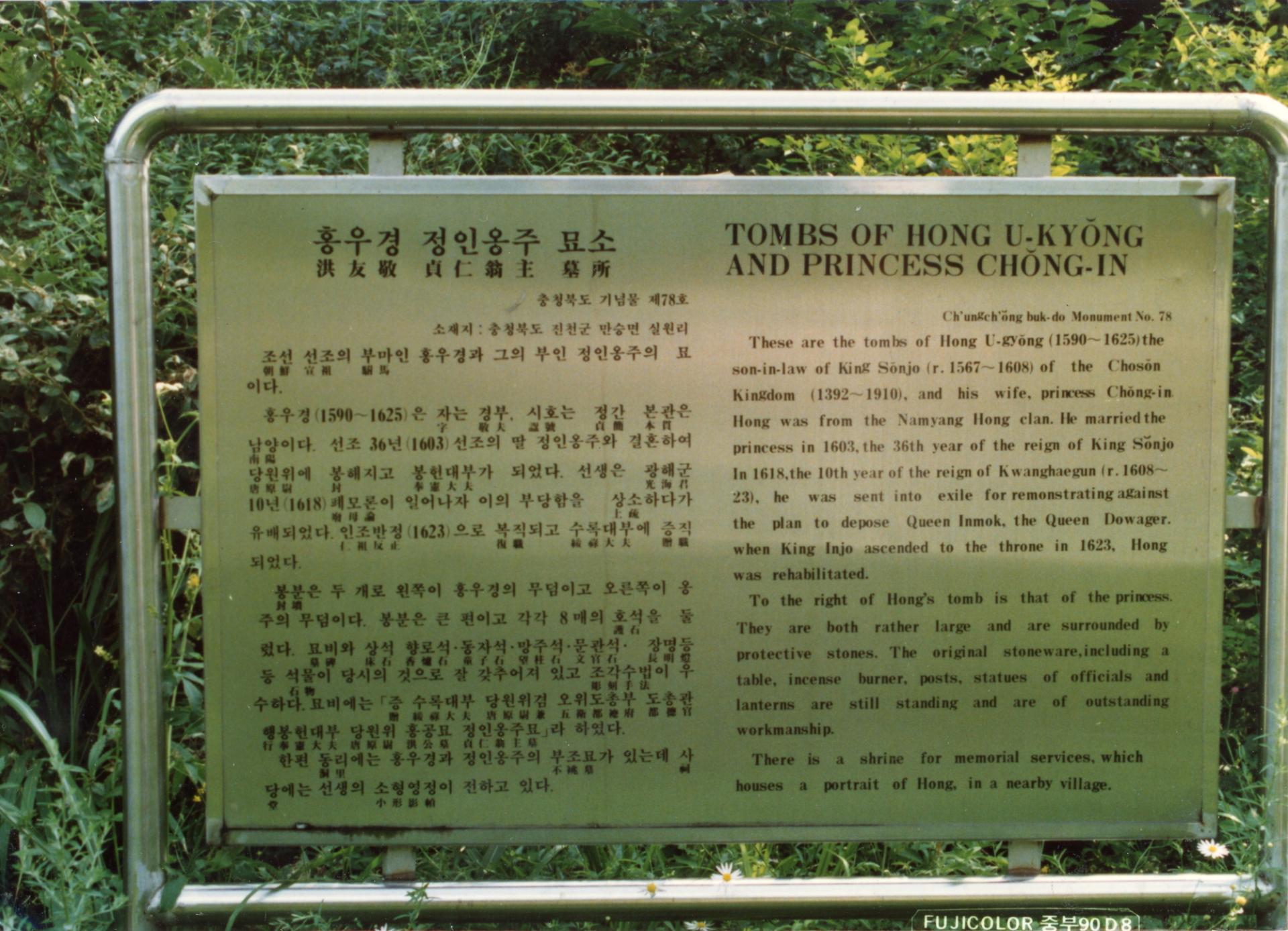진천 홍우경·정인옹주 묘소