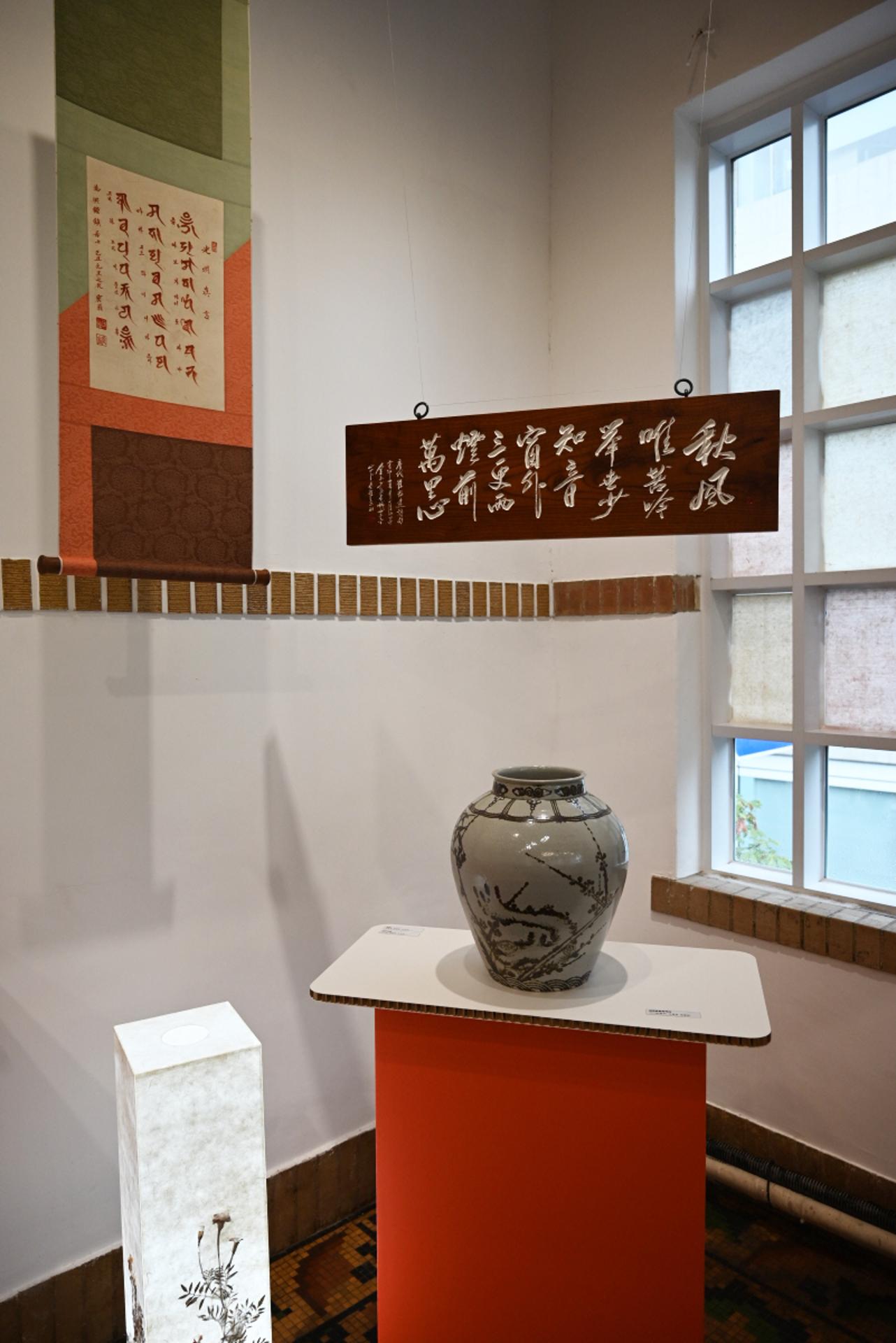 무형유산 공예품(족자 추우야중 매죽문철화백자)]