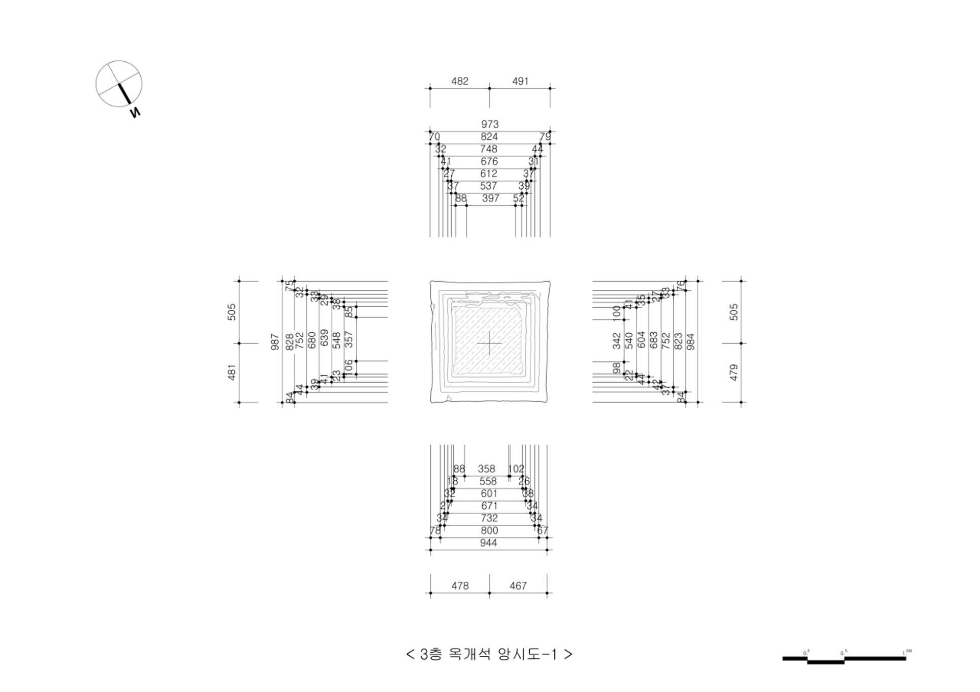 석탑 세부 3층 옥개석 앙시도